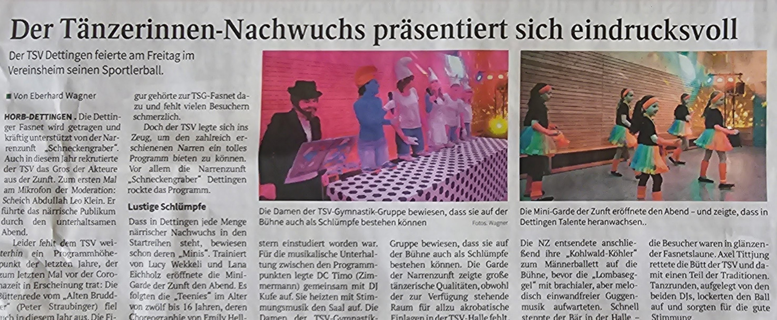 Viele sind originell kostümiert in die TSV Räumlichkeiten gekommen und haben sich von dem tollen Programm bei bester Verköstigung begeistern lassen. Ein Muskelkater der Lachmuskeln am nächsten Tag war garantiert. Die Mini-Garde der NZD konnte gleich zu Beginn verzaubern, gefolgt von der Teeni-Garde mit Ihrer tollen Interpretation von "The Greatest Showman". Die TSV Schlümpfe konnten dann das Publikum mit ihrem originellen Auftritt zum Mitsingen die Halle mit sich reißen. Beste Stimmung dann für den darauf folgenden Auftritt der Garde im Abba-Style. Anschließend konnte das Männerballett begeistern und ließ so manchen bzw. manche bei den Tanzkünsten vor Neid erblassen. Die Lombaseggel als vorletzten Programmpunkt brachten dann endgültig die Halle zum Beben und Axel hat dann mit seiner Gesangs-Rate-Show zum Abschluss die Gäste nochmal so richtig in Ihren Bann gezogen.