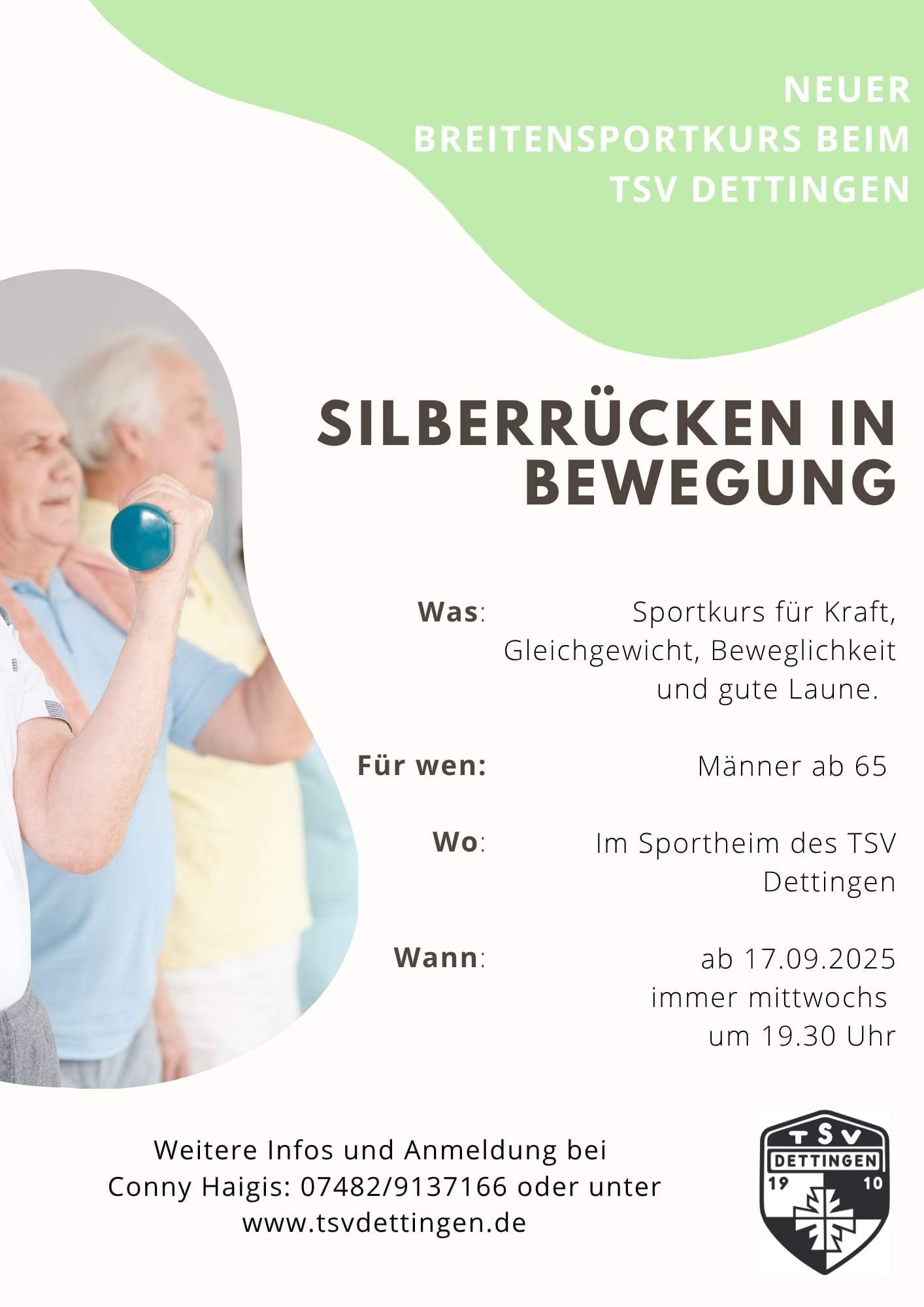 E-Mail: info@tsvdettingen.de oder Telefon: 07482/1260 (Bitte einfach Nachricht auf dem Anrufbeantworter hinterlassen)