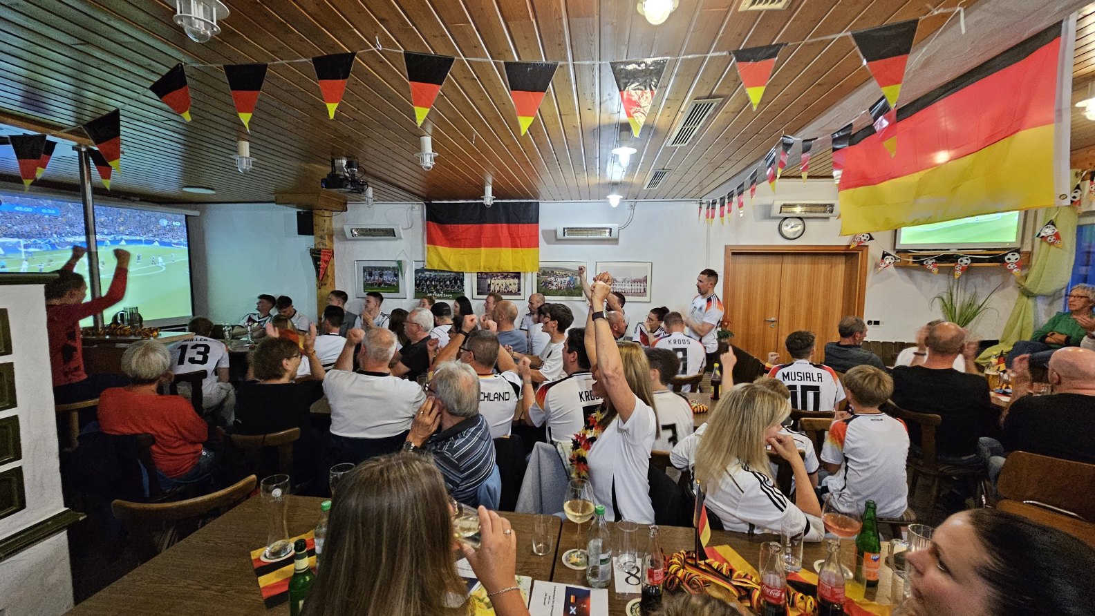 Das prall gefüllte Sportheim konnte sich somit erst kulinarisch stärken um dann bestens gelaunt das Fünf-Sterne-Deutschland bestaunen und bejubeln.